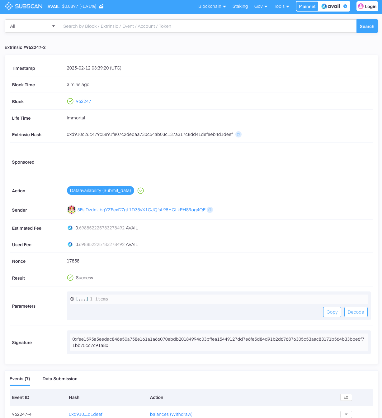 explorer however, makes it possible to do so, since it queries from a dedicated indexer built on top of Avail to support this feature.