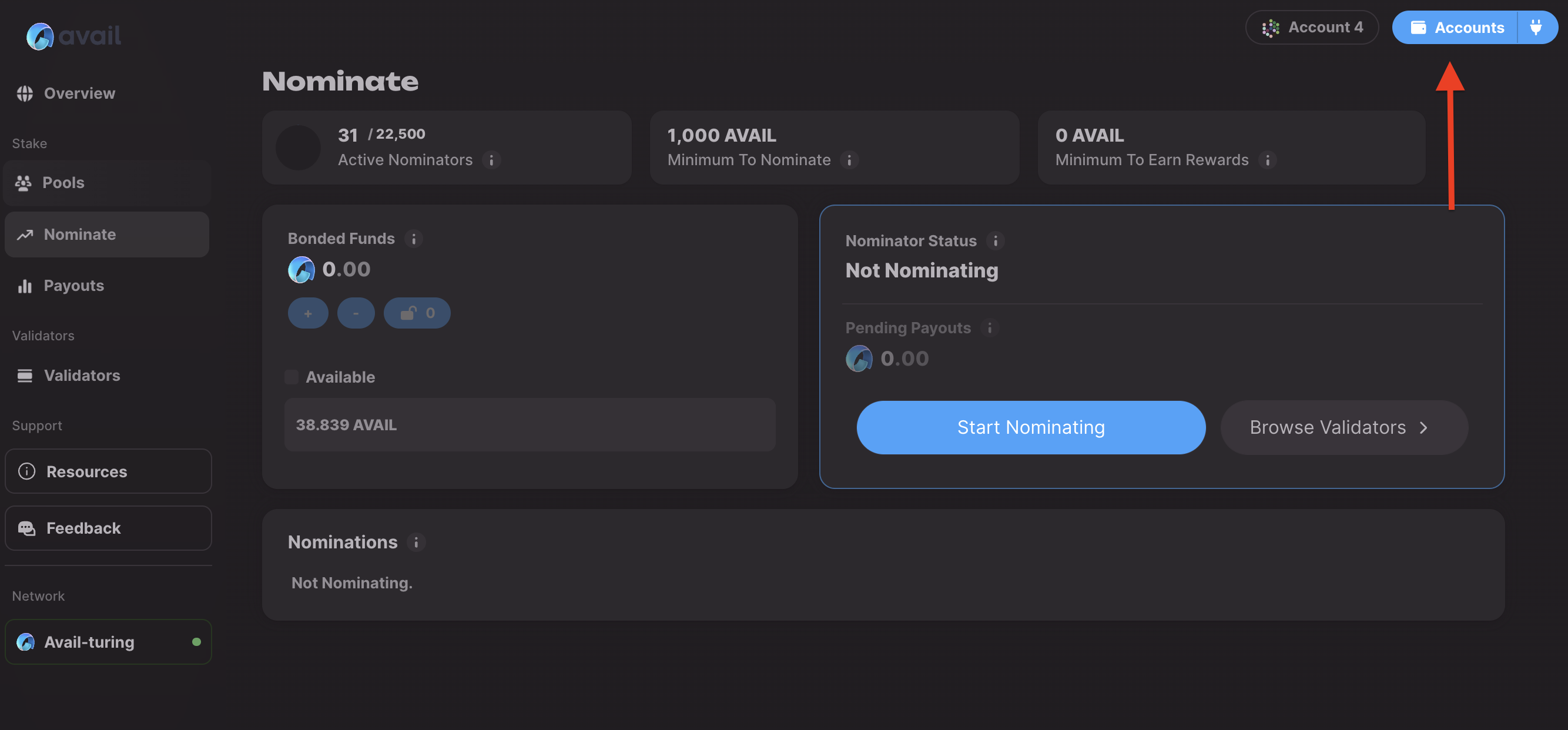 And that’s it! This guide walked you through nominating your AVAIL directly to validators of your choice. Go to the next page to learn how to work with nomination pools.